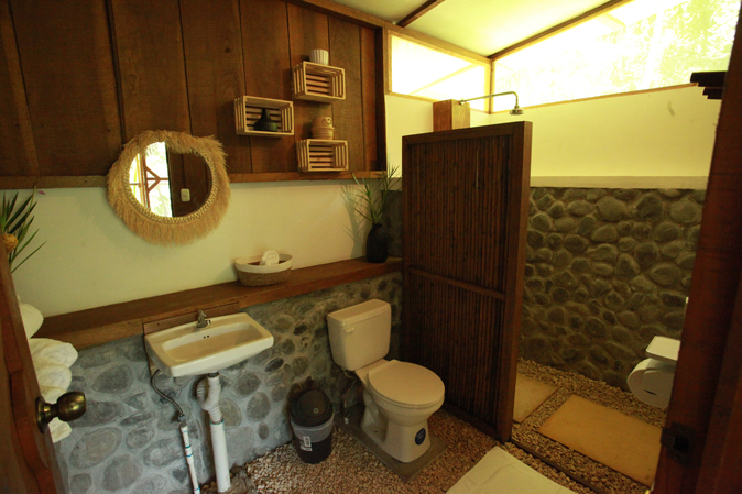 Ave Sol was first constructed by hand, without electricity and using sustainably harvested wood from our land. Other construction materials such as the roof tops were crossed over the river on rafts. Most recently we have constructed a hydro electricity system and built additional private cabins and private bathrooms. We now also offer hot water showers.
