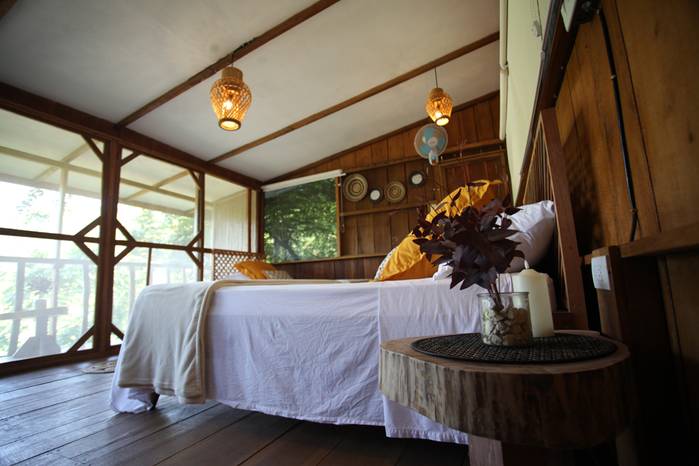 As Ave Sol comes into view, rapids give way to a natural pool which has formed along a horseshoe shaped bend of the river. Our cabins rest high on the riverbank, greeted every morning by the songs of the native bird life and the flowing water. The view is unique (even among properties along this stretch of the river) encompassing panoramic extensions up and down-river, with the Turrialba volcano steaming in the distance and forest as far as the eye can see.